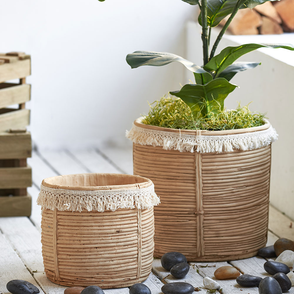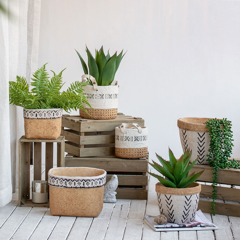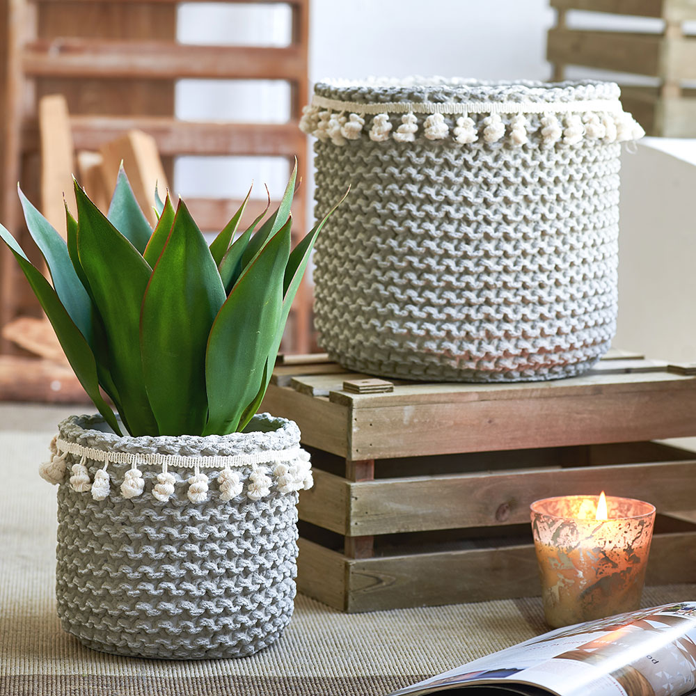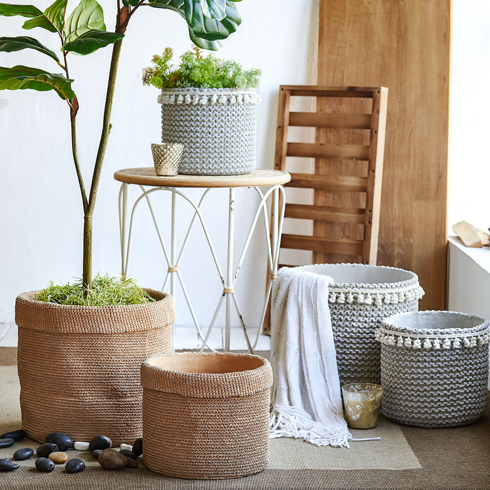 กระถางต้นไม้ปูนซีเมนต์ หูหิ้วคอตตอน ขนาดใหญ่
